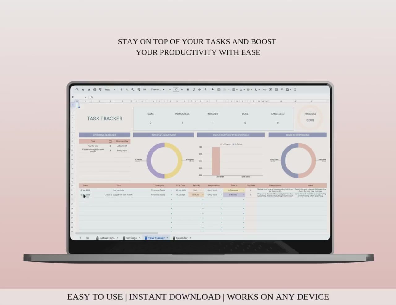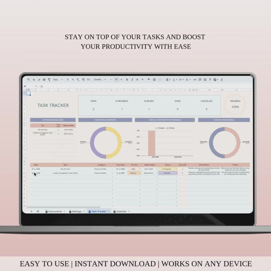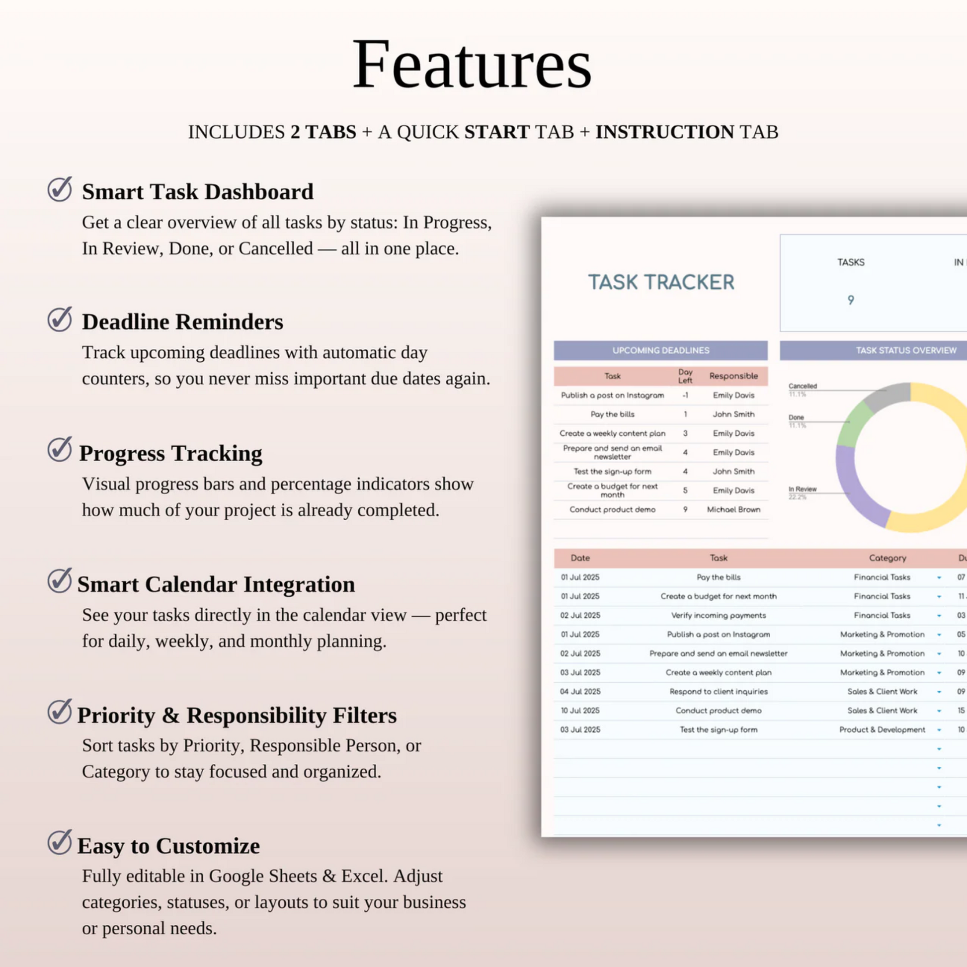 Stay organized, boost productivity, and manage tasks with ease using the Task Tracker Template for Google Sheets & Excel.